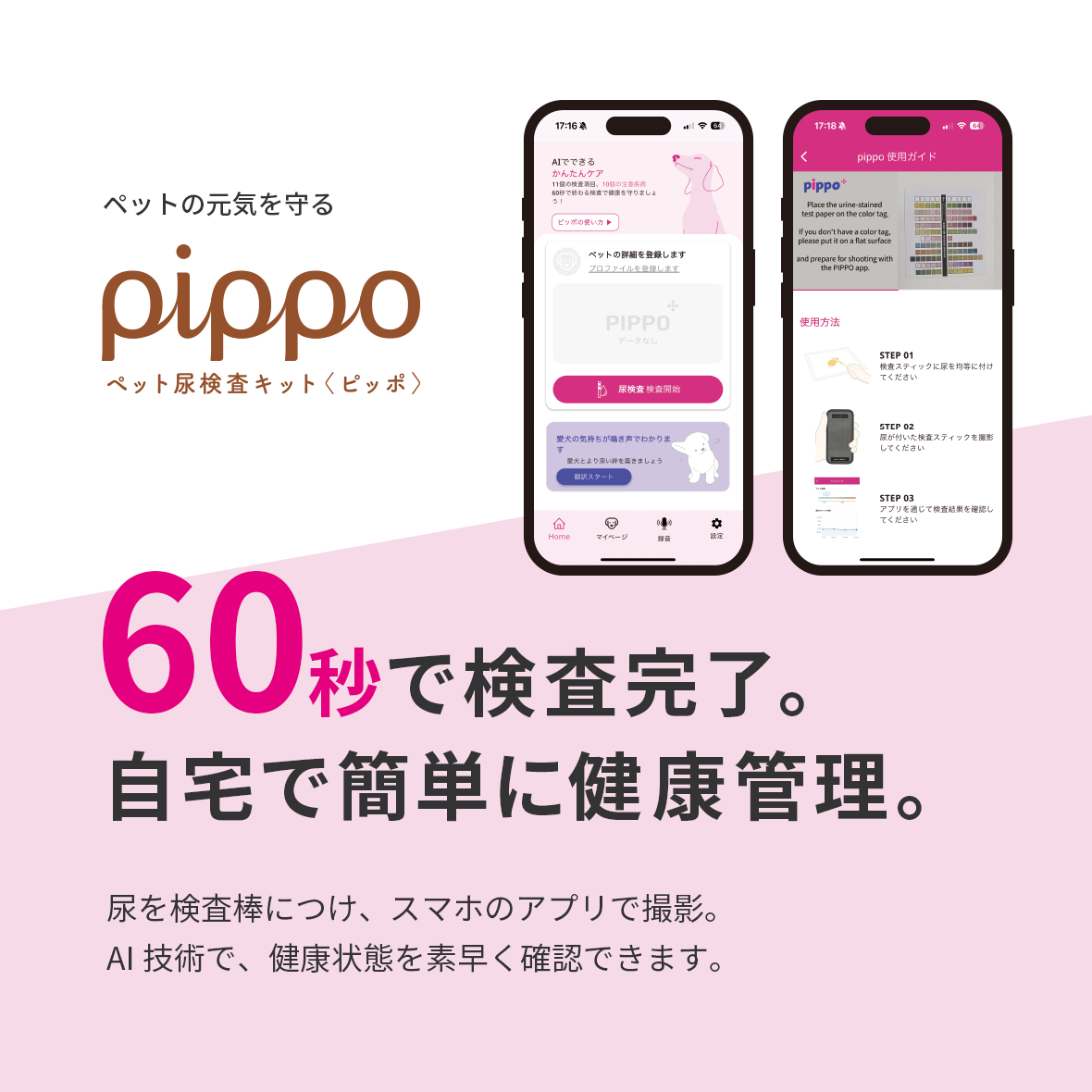 尿を採取してアプリでチェック、ペットの病気をしっかり予防。自宅で簡単、尿検査キット「Pippo」!