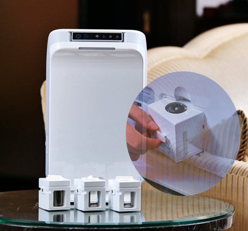 - ウエリスエアーは自然の大気浄化方式を採用し、人体に無害で最も環境にやさしい方法として自然の浄化物質であるOH(ヒドロキシラジカル)を大気レベル に豊富に生成し、各種汚染物質(臭い、バクテリア、ウイルス、細菌、カビなど)を実質的に除去します。